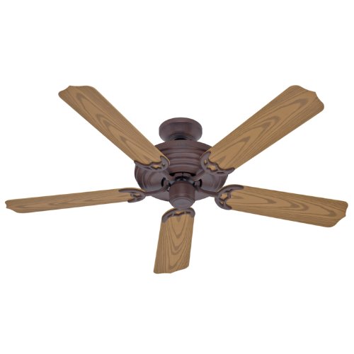 The Hunter Sea Air 52-Inch Ceiling Fan is the ultimate outdoor fan. ETL Wet Listed, it's safe to use in both covered and uncovered areas, including open or screened-in porches, pool houses, guesthouses, and more. Its unique, weathered appearance has vintage appeal, while its innovative, tarnish-resistant finish keeps it looking good for years to come. Made of durable plastic, its five blades also resist wear and tear.